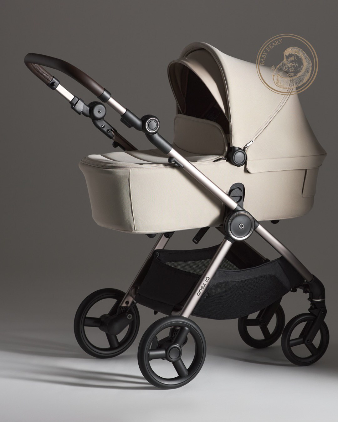 Капюшон люльки Anex IQ Premium размера XXL легко регулируется при помощи двух кнопок по бокам и укрывает малыша буквально до самых ножек! Он бесшумно опускается вниз, не тревожа сон новорожденного. Для жарких дней предусмотрена двойная система вентиляции: сетчатая секция на капюшоне и панорамное окно в изголовье. На кожаном дополнительном козырьке расположен стильный 3D-логотип Anex.
