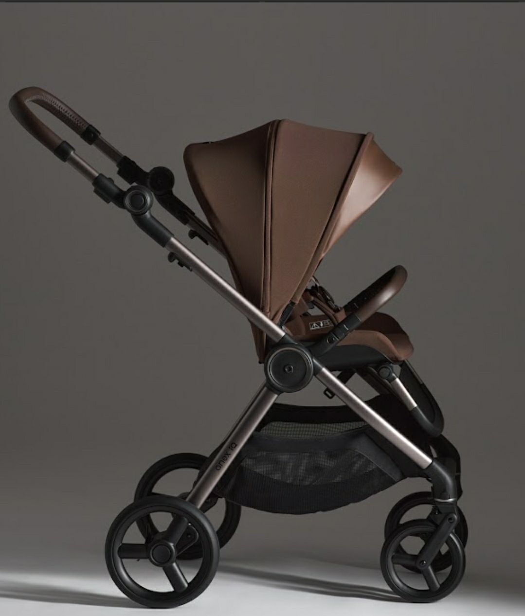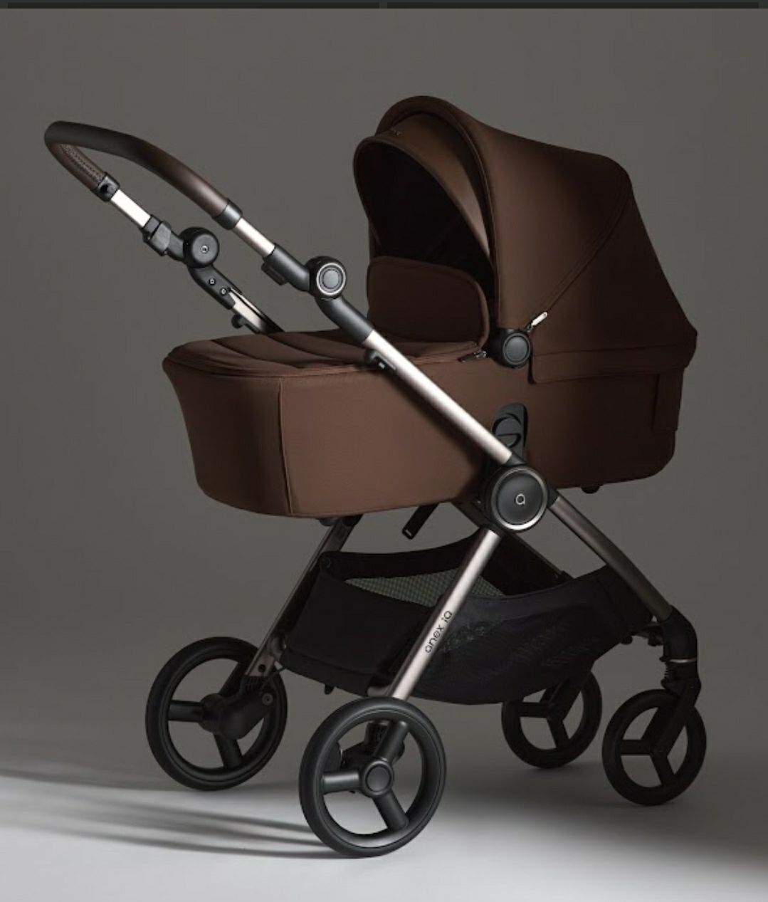 Анодированная рама легко складывается вместе с прогулочным блоком, установленным в любую сторону. Предусмотрен ремешок для переноски рамы в сложенном виде. Это будет актуально при снятии люльки и сложении шасси отдельно. В версии багги коляска складывается более компактно, а переносить ее можно за бампер или ремешок. Anex IQ Premium разработна для удовлетворения всех ваших нужд и нужд вашего ребёнка – первая в мире коляска на всё детство!