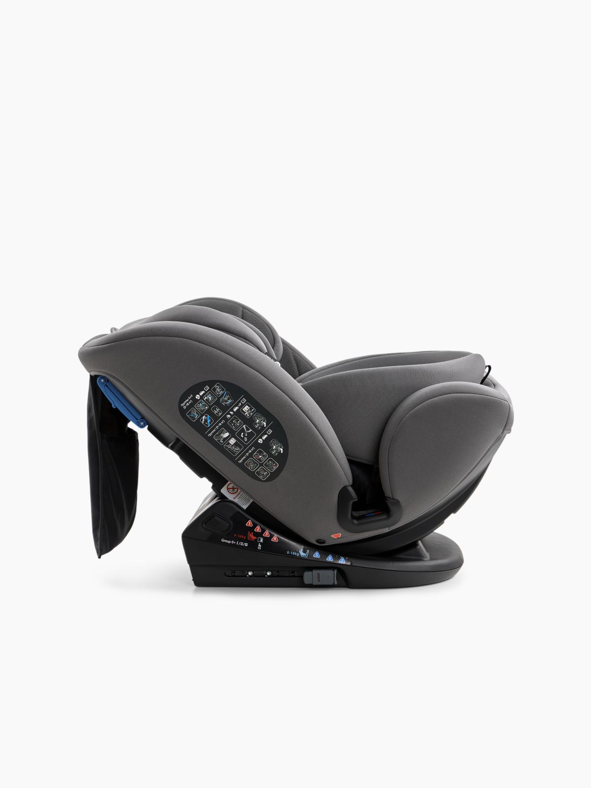 • Для группы 0+ (0-18 кг) - трехточечные автомобильные ремни.Разрешено устанавливать только в положении наклона 5,6 и 7.Направление установки: против хода движения автомобиля.• Для группы I (9-18 кг) допускается два варианта установки: - трехточечные автомобильные ремни или система ISOFIX и якорный ремень Top Tether.Направление установки: по ходу движения автомобиля.